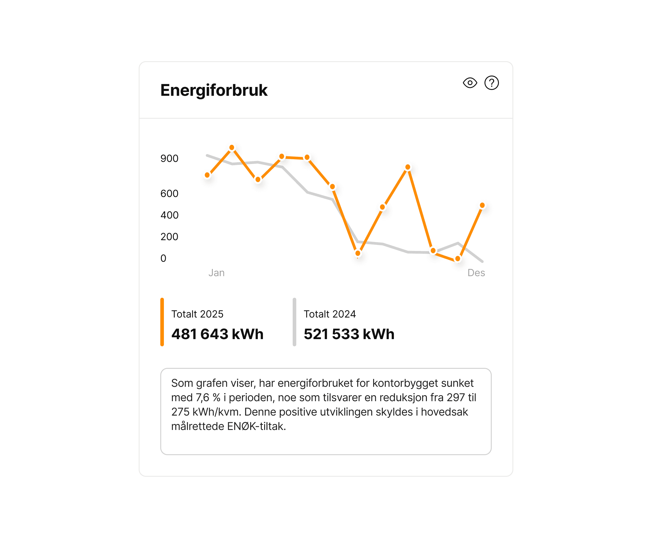 Skal din bedrift sertifiseres eller fornye sin Miljøfyrtårn-sertifisering? Bærekraftsmodulen leverer data ferdig skreddersydd i tråd med Miljøfyrtårns bransjekrav. Du kan trygt kvalitetssikre rapporten ved å se nøyaktig hvor dataen er hentet fra regnskapet ditt. Med visuelle grafer og enkel eksport til Excel, blir veien til en profesjonell bærekraftsrapport både kortere og tryggere for hele bedriften.