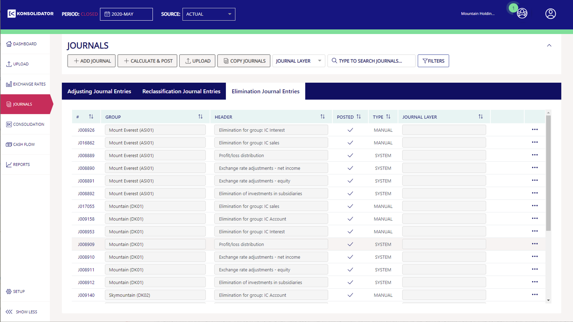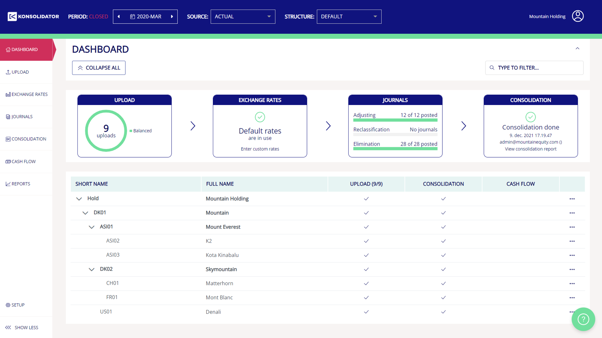 Konsolidator hjelper finansteam med å automatisere konsolidering og rapportering av flere enheter og flere valutaer. Applikasjonen automatiserer valutakursomregning og justeringer, beregner og poster interne elimineringer og anleggsmidler valutakursjusteringer og beregner og eliminerer minoritetsandeler.