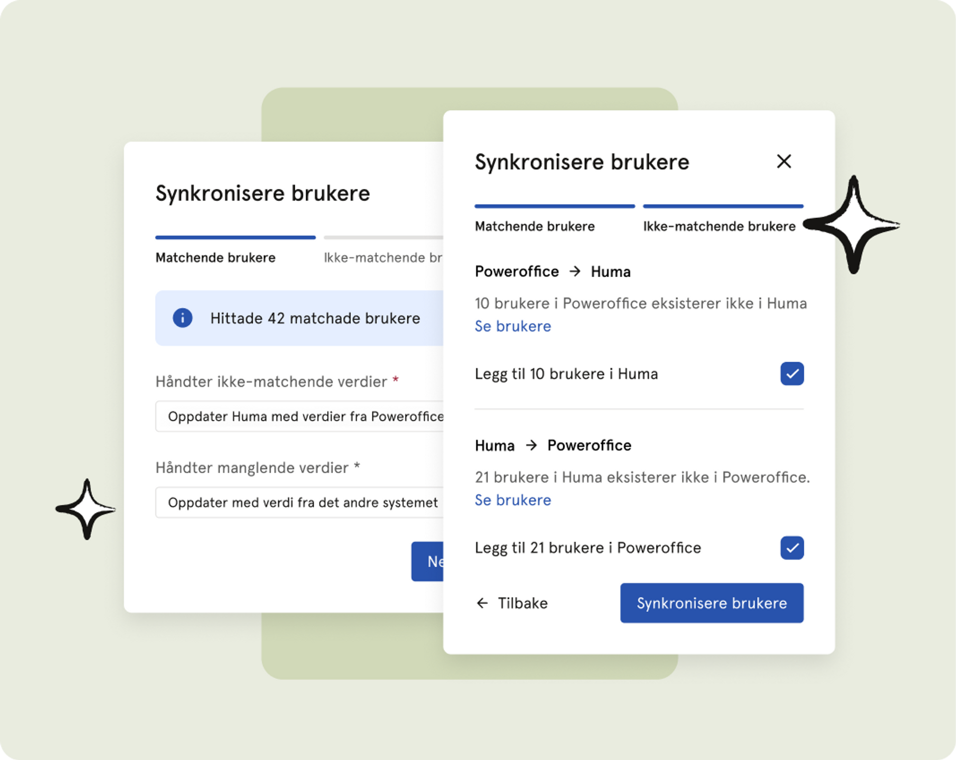 For å komme i gang med integrasjonen må du logge deg inn på Poweroffice Go, legge til «Huma – enklere HR» som en utvidelse, og hente ut en brukernøkkel (klientnøkkel). Logg deg så inn på din Huma-konto og gå inn på “systeminnstillinger.” Gå videre til “integrasjoner” og “Poweroffice Go” og trykk på “koble til.” Nå må du bare legge inn brukernøkkelen fra Poweroffice Go så er du klar!